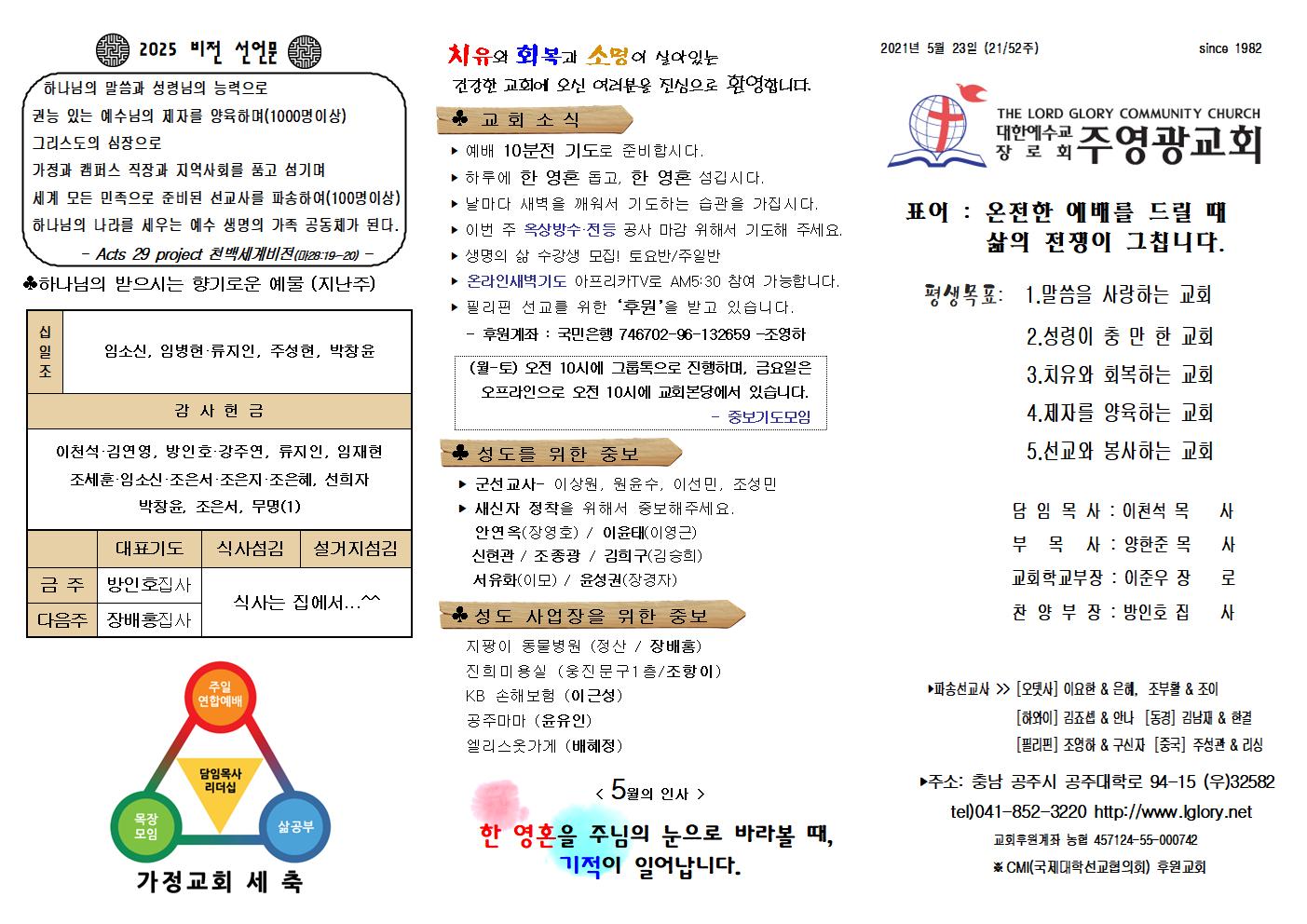 2021년 5월 23일 주영광주보입니다.
