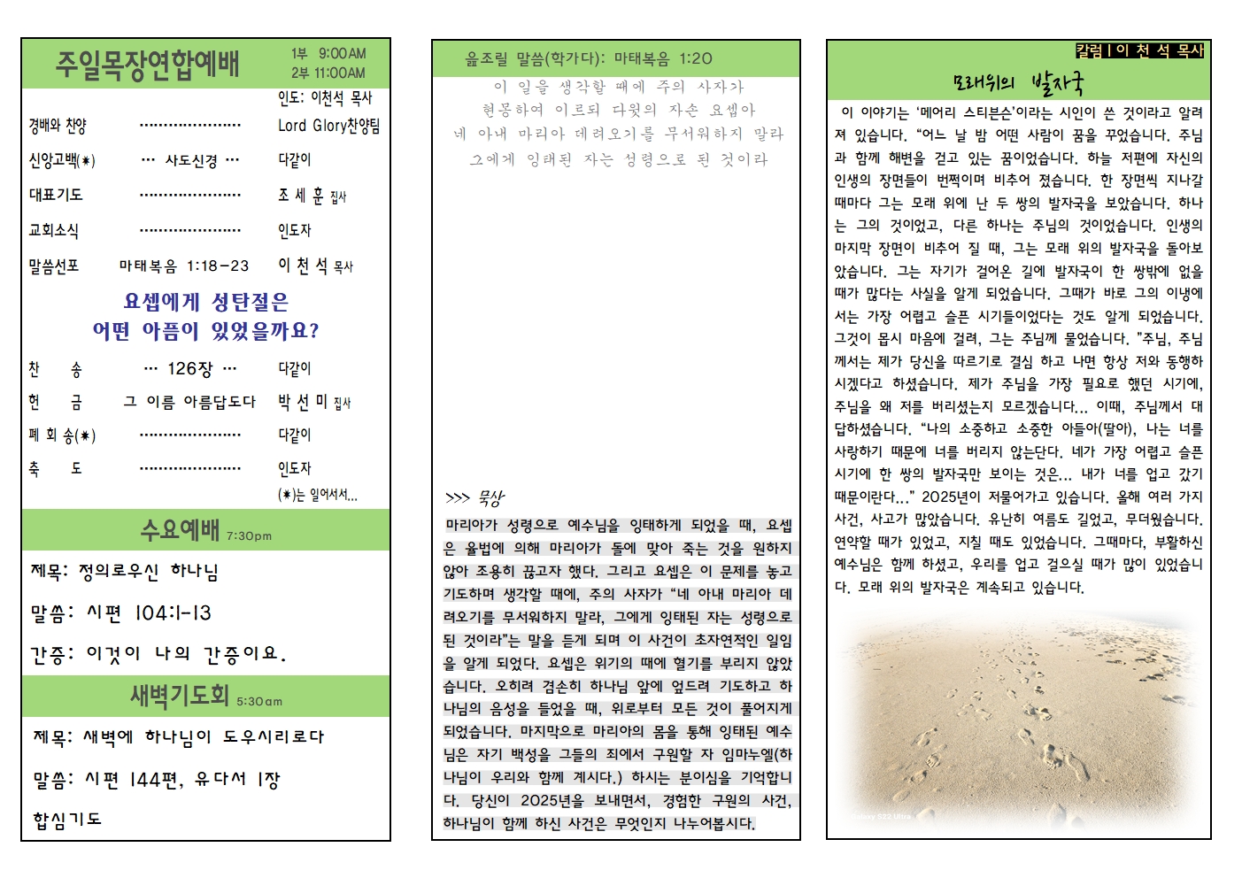 | 이전글 | 2025년 12월 21일 주영광주보입니다. | 양한준 | 2026.03.11 | 0 | 22 |