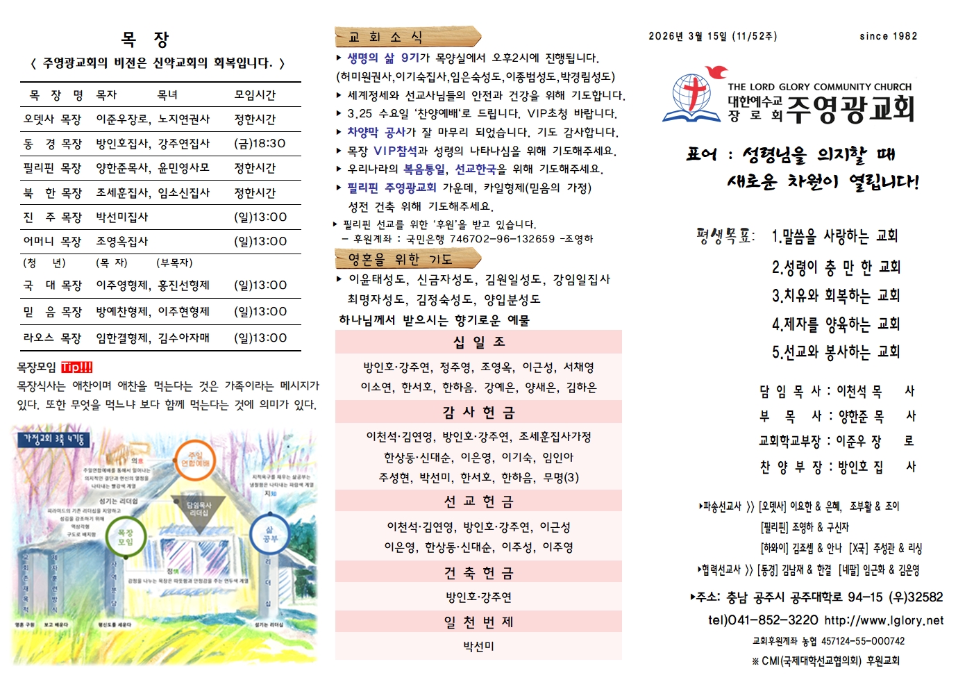 | 이전글 | 2026년 3월 22일 주영광주보입니다. | 운영자 | 2026.03.29 | 0 | 10 |