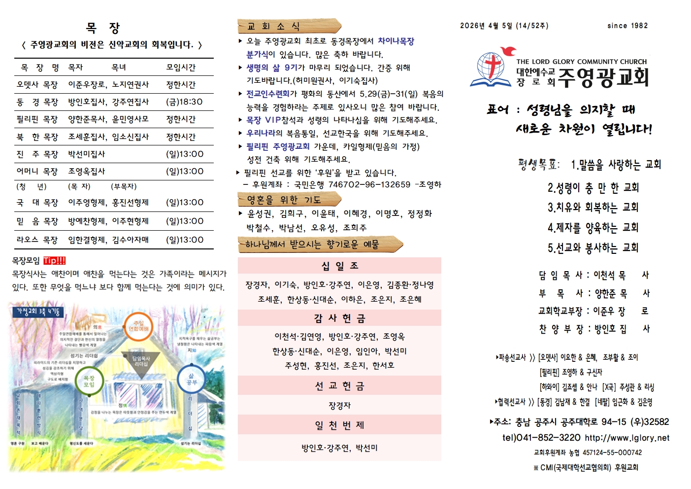 2026년 4월 5일 주영광주보입니다. 운영자 2026-04-05 추천 0 댓글 0 조회 10 http://lglory.net/bbs/bbsView/35/6622810 첨부파일 (0) 0